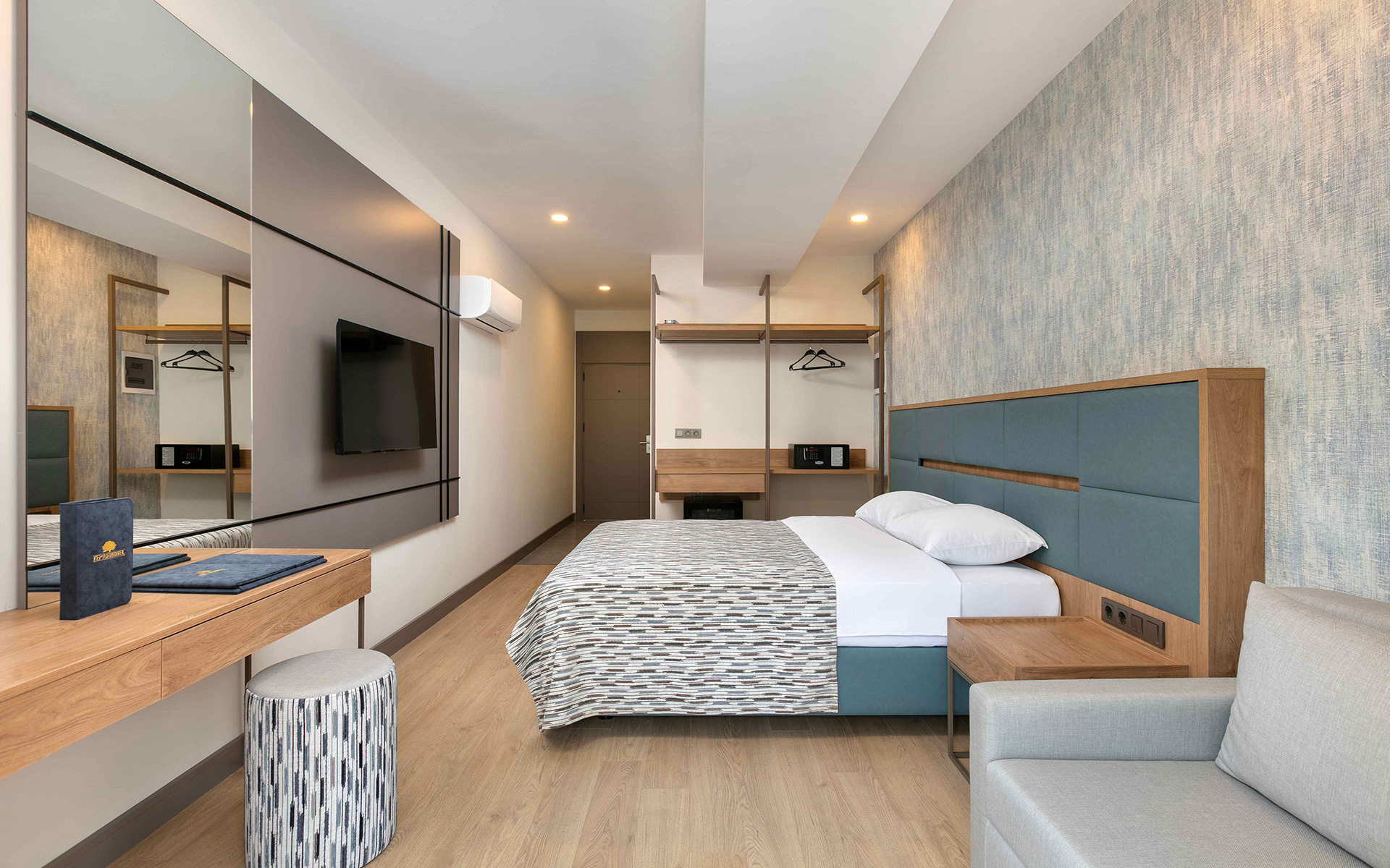 Standard rooms are 25 m² wide and offer a comfortable stay with their spacious, comfortable, modern design and city view. In addition, 40" 4K TV, safe box, hair dryer, mini fridge, air conditioning are at your service.